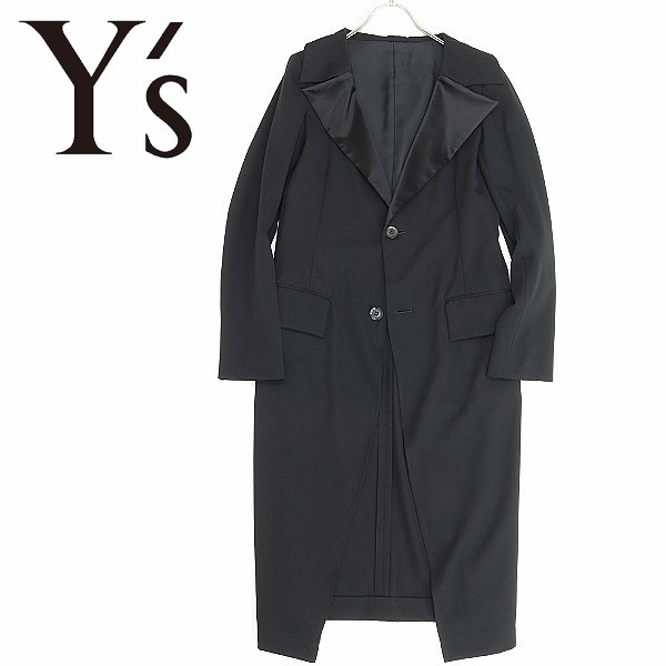> ●Y's ワイズ ヨウジヤマモト ウール ギャバ 異素材切替 モーニング コート 黒 ブラック 3