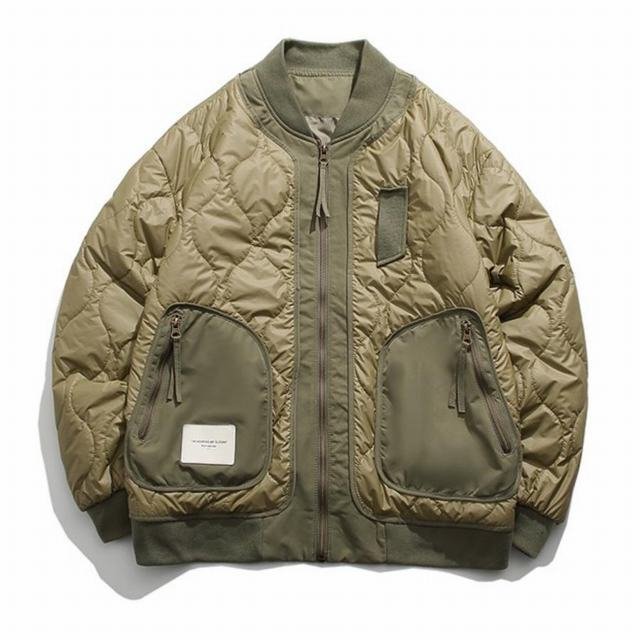 - キルティング 中綿フライトジャケット 羽織 ビッグポケット 軽い メンズ 防寒 キャンプ 春秋冬 カーキ M