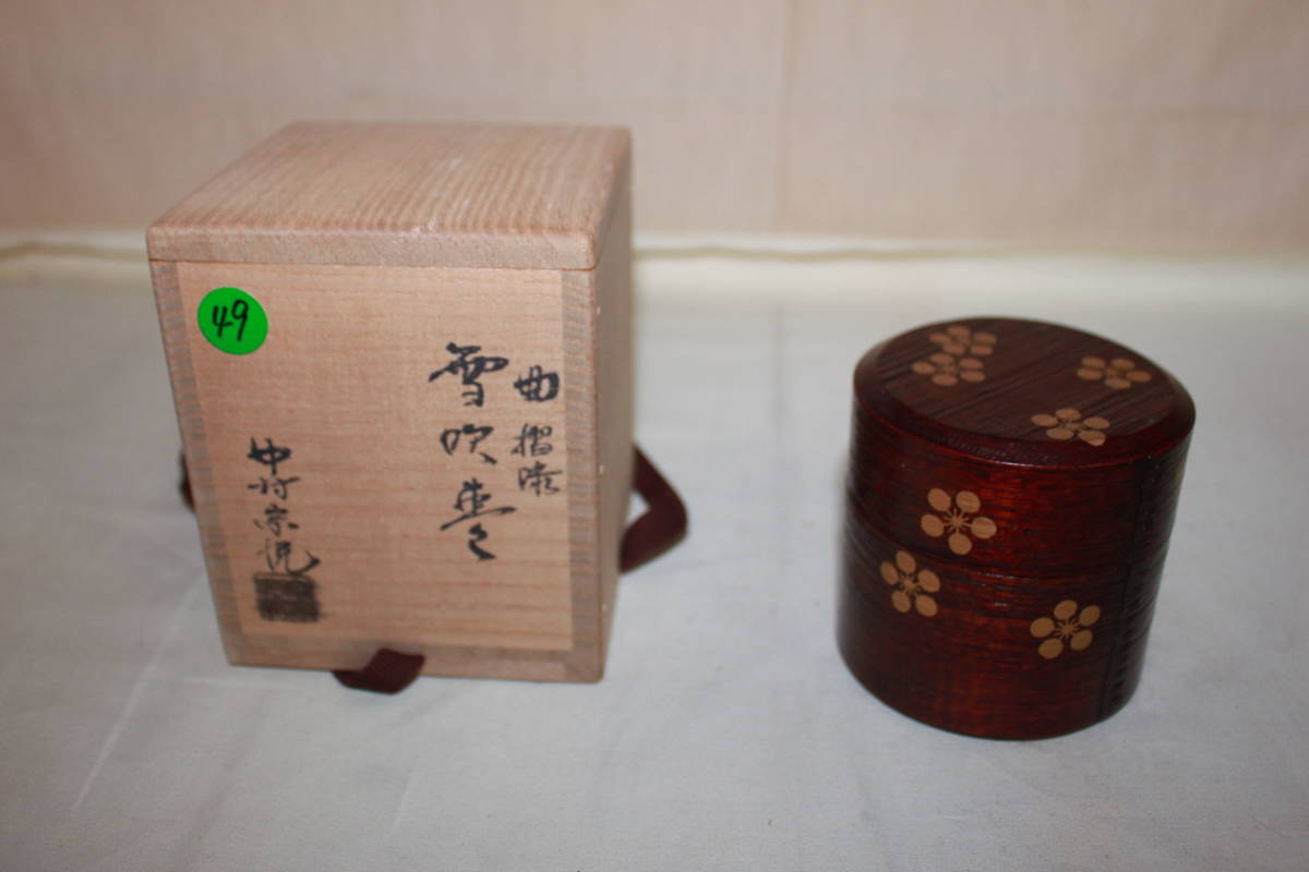 - ●中村宗悦 溜塗 竹皮 利休梅金蒔絵 雪吹棗 茶道具