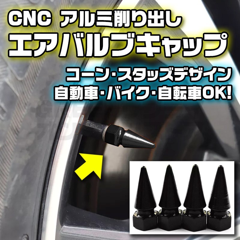 - CNC アルミ削り出し エアバルブキャップ パイクナット ブラック 4個セット