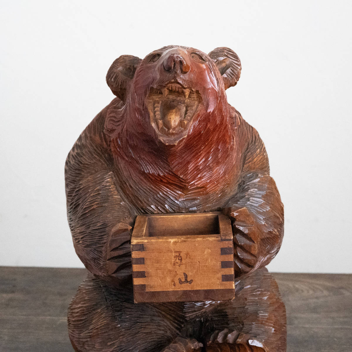 - 木彫の熊 酔っぱらい熊 酔仙 北海道 民芸品 木彫り熊 木製彫刻 飾り オブジェ 置物 民藝 木彫熊