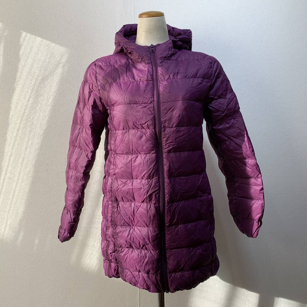 - STYLE BASIC ダウンジャケット レディースS 紫/パープル フード 軽量 フェザー 無地 シンプル K3201