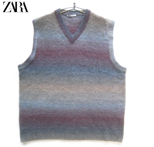 - 美品!!ザラ ZARA*グラデーション ふわふわウールニットベスト L グレー系
