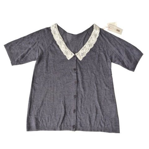 - 新品 wood wind レース襟 ニットソー 麻 リネン ブレンド カットソー ニット ブラウス トップス 半袖 紺 レディース ルシアン