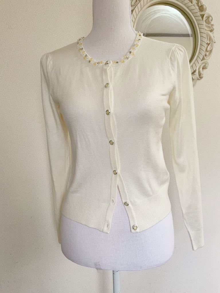 - 美品 エフリード ニット ビジュー使い カーディガン クリーム色