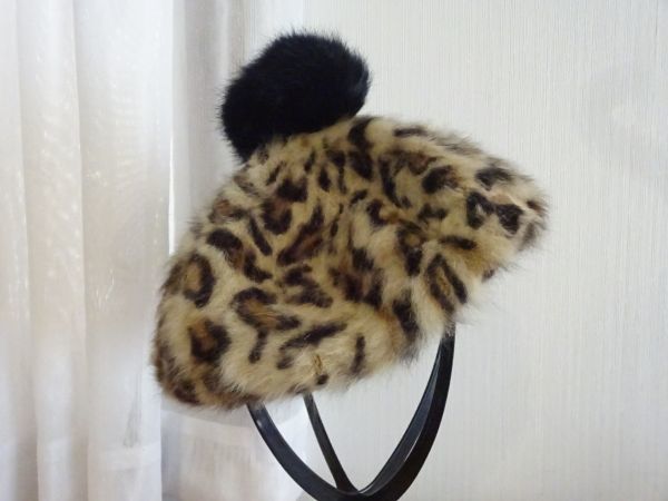 > ◆ 日本婦人子供帽子 ◆ レディース・ガールズ 豹柄 ベレー帽 モコモコハット サイズ57cm〜59cm キャップ 帽子