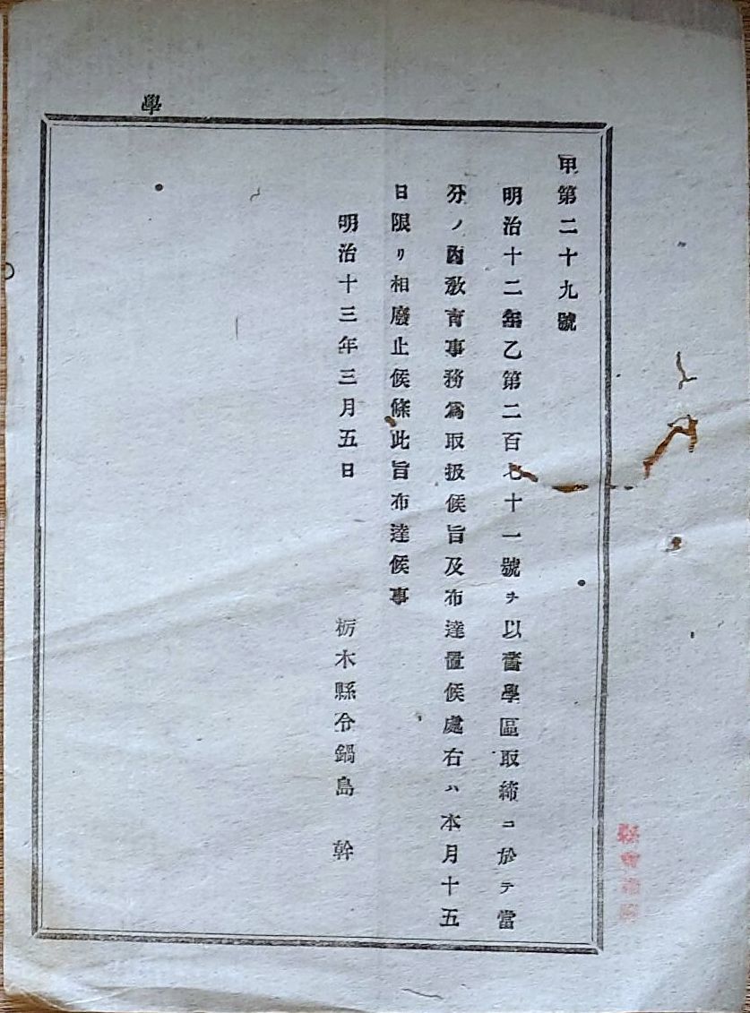 - f24012916〇明治布告布達 旧学区取締 教育事務 栃木県 明治13年〇和本古書古文書