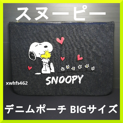 > 新品即決 スヌーピー 薄型デニム ポーチ ビッグサイズ 縦24×横33cm クラッチバッグ バッグインバッグ SNOOPY PEANUTS zak