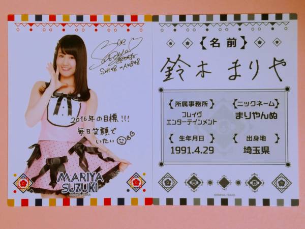 - AKB48 福袋2016 プロフィールカード 鈴木まりや 2枚セット