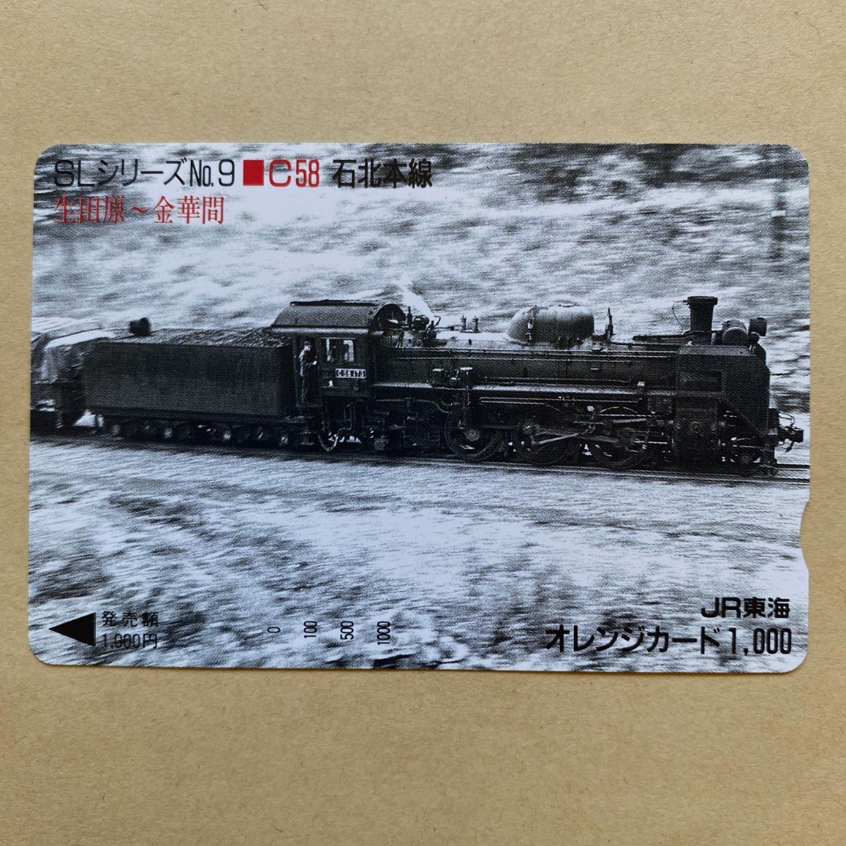 - 【未使用】 オレンジカード 額面1000円 JR東海 SLシリーズNo.9 C58 石北本線 生田原〜金華間