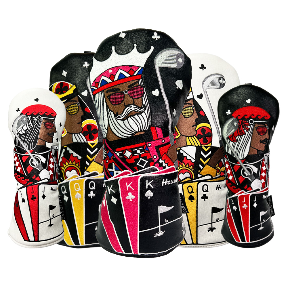 - ゴルフヘッドカバー ウッド用カバー ドライバー440cc 460cc用カバー ユーティリティUT用 トランプ 黒、白 4点セット 自由に組み合わせ