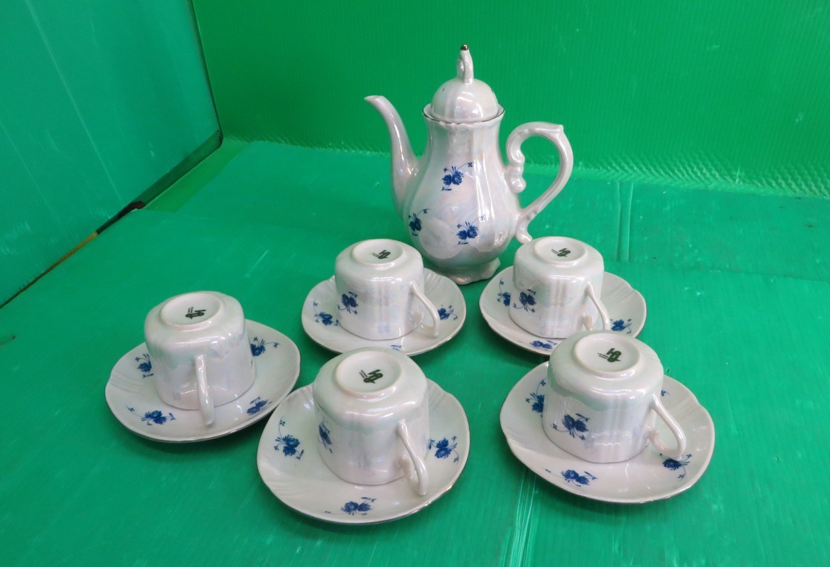 > N-50■KEINAN CHINA カップ&ソーサー 5客 &ポット セット 昭和レトロ パール色 金縁 中古 現状渡し