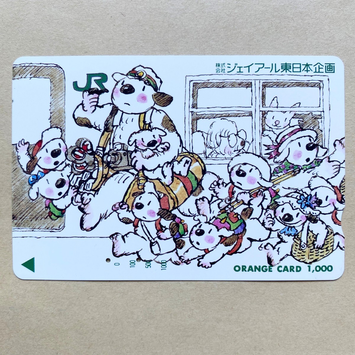 - 【使用済】 オレンジカード JR東日本 ゴルフと釣りに出かける犬たち ジェイアール東日本企画