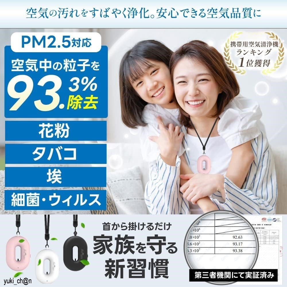 - 携帯用空気清浄機 首かけ ピンク 花粉症対策 感染症対策 除菌 消臭 USB充電 PM2.5 たばこの煙 花粉 ウイルス 細菌 生活臭