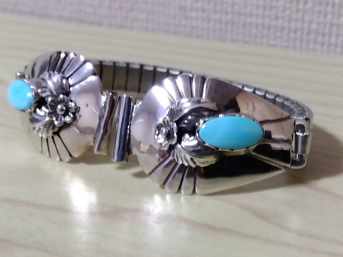 - 即決\7900 未使用品 シルバー925 インディアンジュエリー ターコイズ 時計ベルト スターリングシルバー