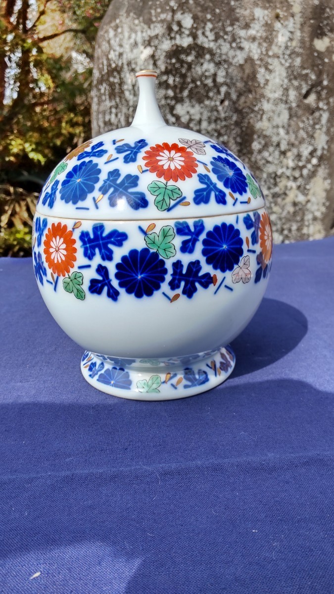- 香蘭社 ボンボニエール キャンディーポット 菊文 香蘭社調 元箱 栞
