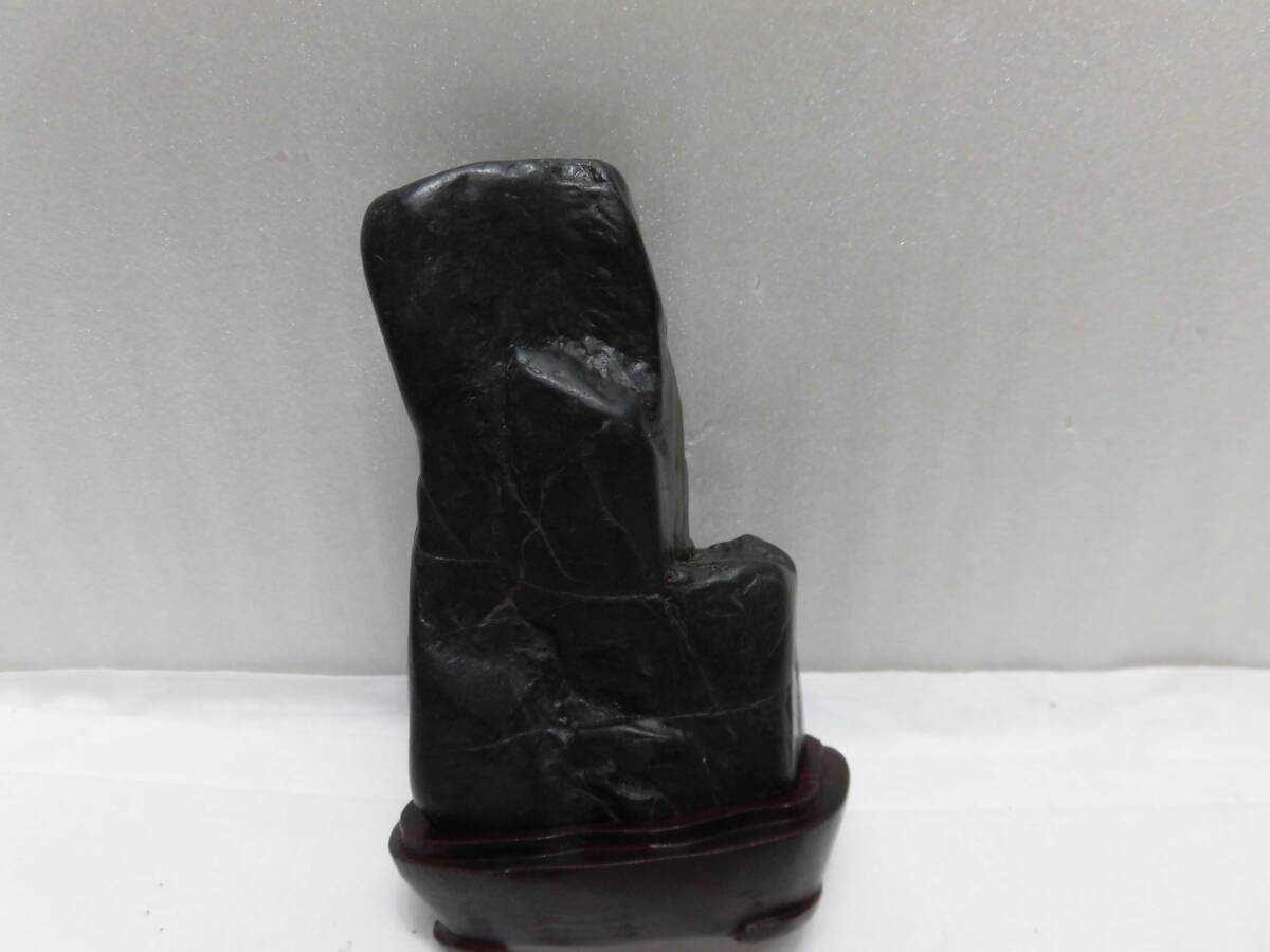 - 日本石百選、最上質、ビル形=ロ黒マグロ神居古潭石(右中段=小さな溜り)北海道、旭川産、コレクション、自然、岩石、鉱物