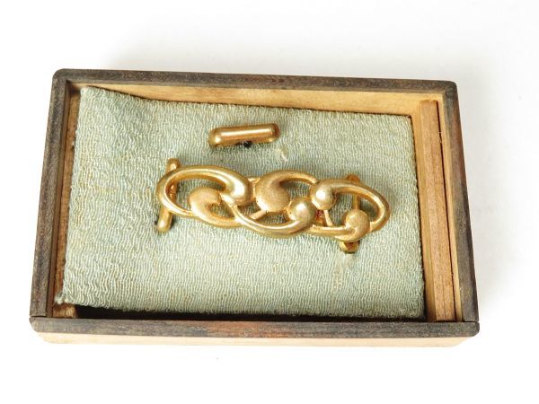 - 【6348】和装小物 大正~昭和 オリジナル 銅製 鍍金 二つ巴 帯留(初品・買取品)