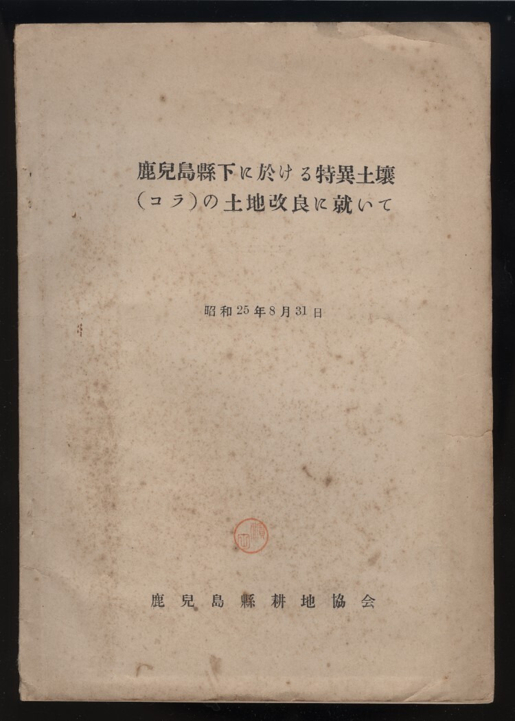 > 鹿児島県下に於ける特異土壌(コラ)の土地改良に就いて 昭和25年 鹿児島県耕地協会発行 折込コラ層分布図1枚入 検:開聞岳火山砂礫地質地層
