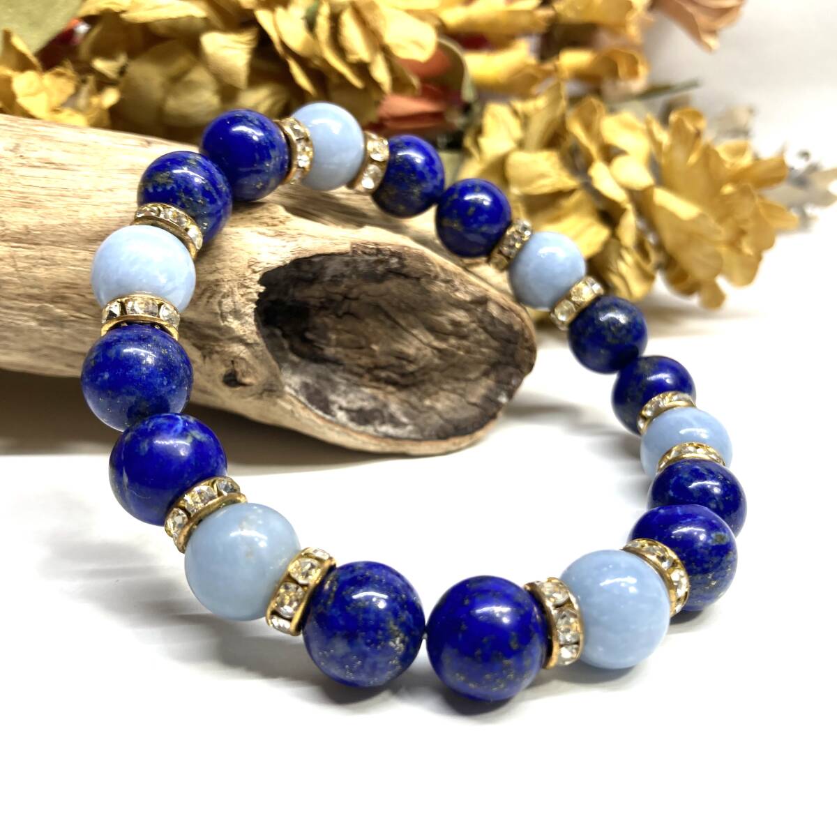 > ラピスラズリ&エンジェライト パワーストーン ブレスレット 天然石ブレス (ゴールド) 10mm メンズ・レディース 癒し お守り