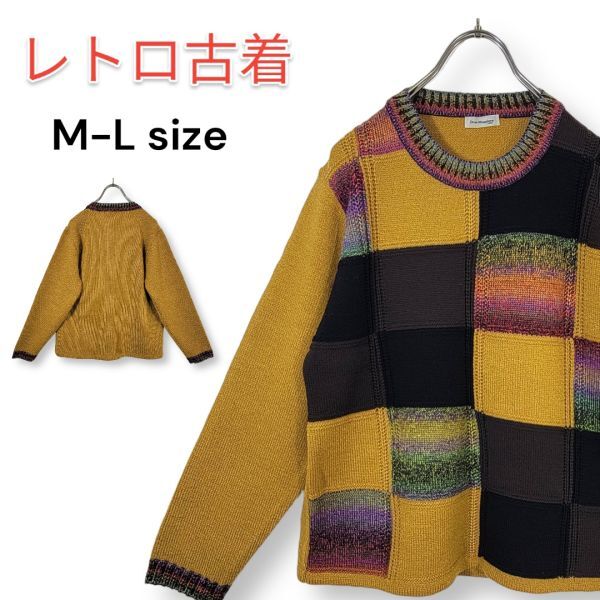 - 日本製 orsa maggiore ニット セーター M~Lサイズ マルチカラー ブロックチャック マスタード