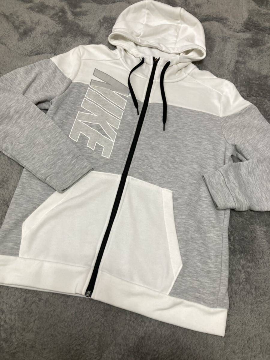 > ●ナイキ●NIKE スウェット パーカー DRY~FIT フルジップ フーディ ジャケット ホワイト グレー M メンズ