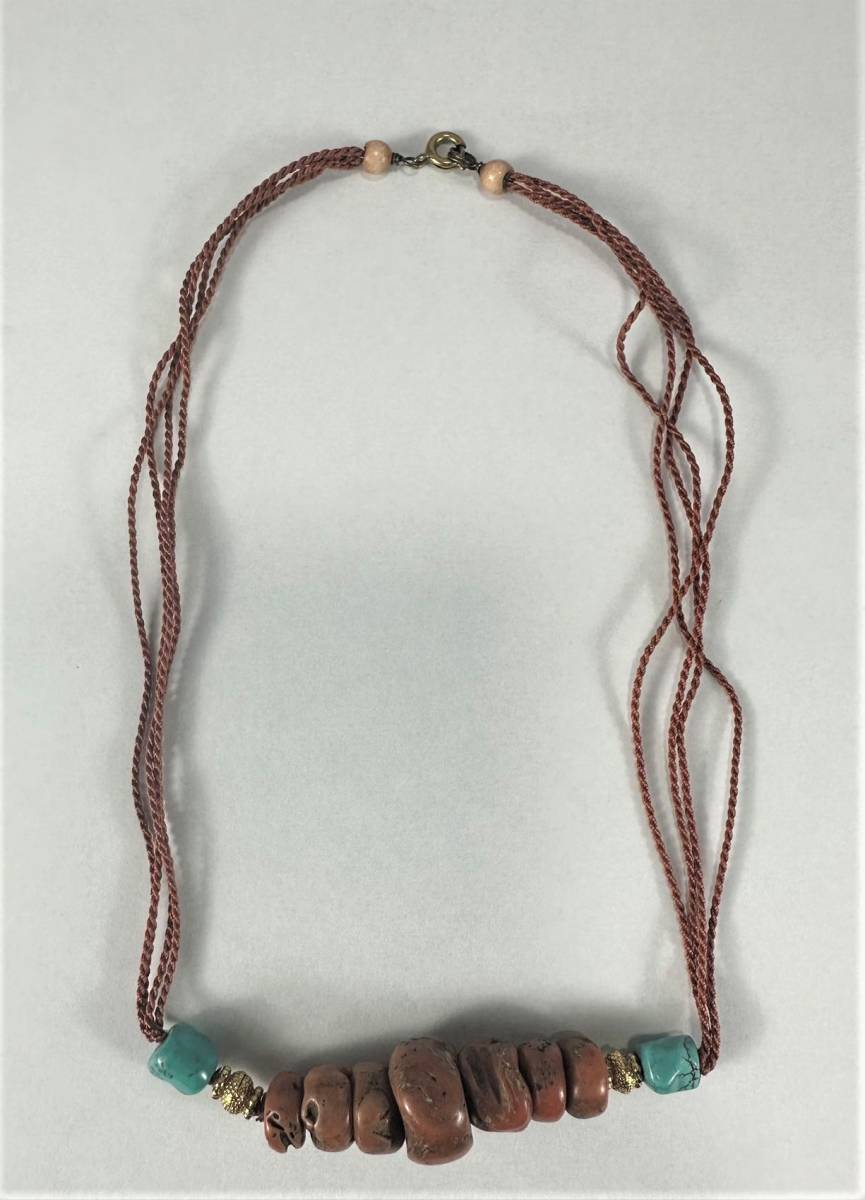 - E335●アクセサリー ネックレス 珠串 トルコ石 メンズ レディース 重さ:約12g 現状品