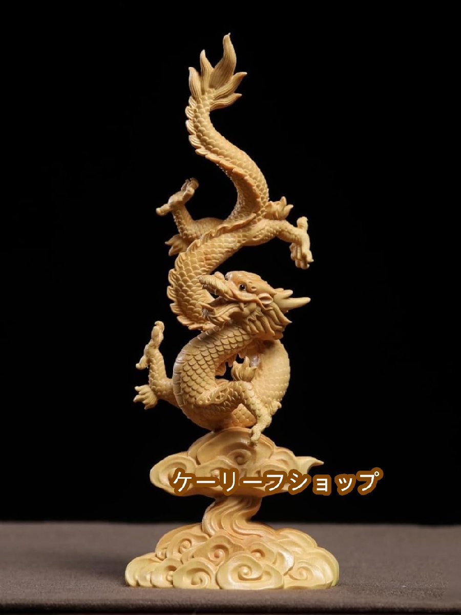 - 【ケーリーフショップ】龍 置物 木彫り 辰年 置物 龍神様 グッズ 金運上がる置物 (高さ20cm×巾8.5cm)