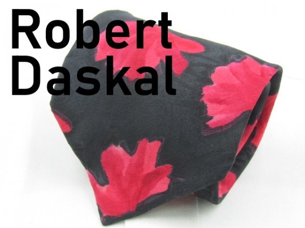 - 【絵画 花】 OB 942 ロバート ダスカル Robert Daskal ネクタイ 黒 赤系 花柄 プリント