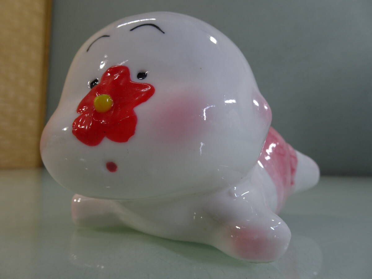 - 陶器 貯金箱 はいはい赤ちゃん ピンク小 中古 昭和レトロアンティーク 当時物