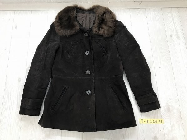 - STADICK MODELLE レディース ファー襟付 レザーコート 38 茶