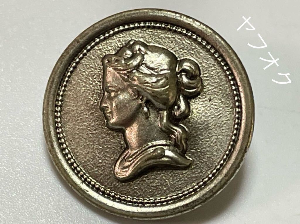- メタルボタン 1個 フランス輸入 アンティーク ヴィンテージ 22ミリ 人物 女性横顔 カメオ 240226-2