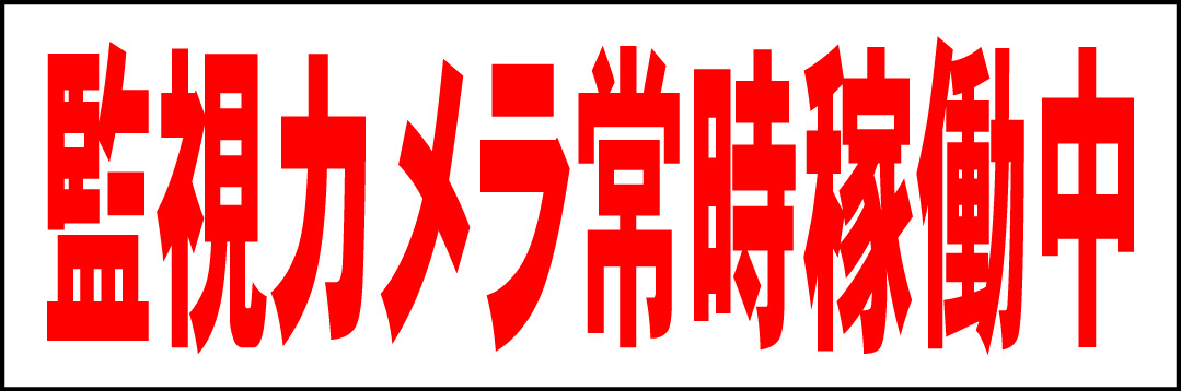 - シンプル横型看板「監視カメラ常時稼働中(赤)」【駐車場】屋外可