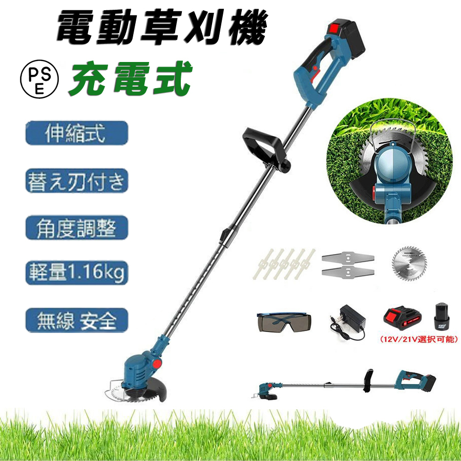 - 即納 草刈り機 充電式 電動草刈機 伸縮角度調整 18Vバッテリー互換 家庭用 刈払い機 軽量 雑草 多機能 PSE認証 42V5Cバッテリー8000mAh