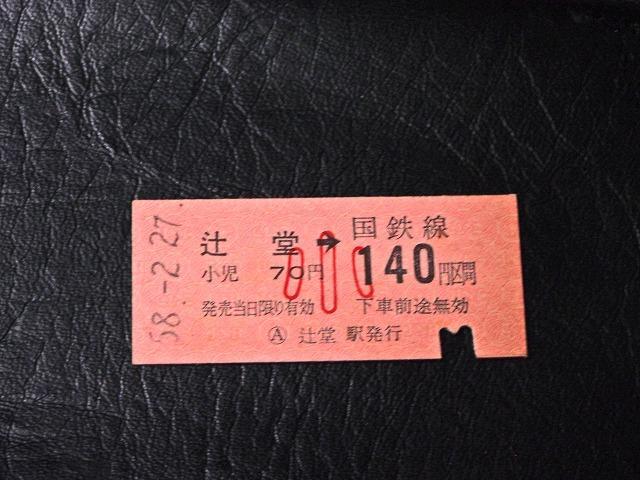- 硬券 乗車券 辻堂駅から140円 小人 国鉄 昭和58年 改札鋏あり