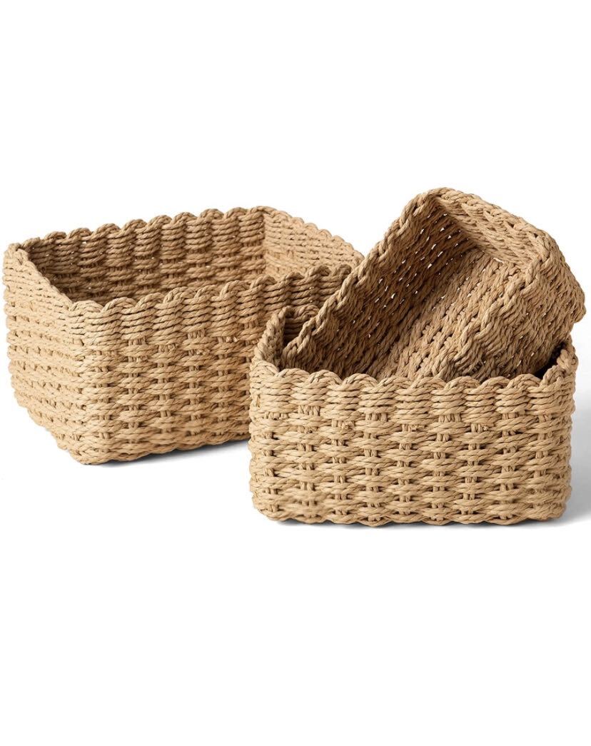 - 収納ボックス 収納バスケット 編み込み 食器棚用 再生紙 ロープ 容器 整理整頓
