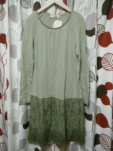 - SUPER HAKKA 長袖ワンピース R7884 未使用タグ付き 緑系 Tシャツ地 裾レース 長期保存品 レターパックプラス