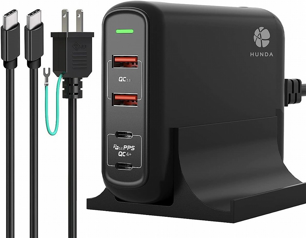 - 【新品】HUNDA 4ポート 最大150W充電 急速充電 USB PD QC4 PPS SCP FCP対応 A1903 充電器 Type-C×2 Type-A×2 iPhone iPad Android
