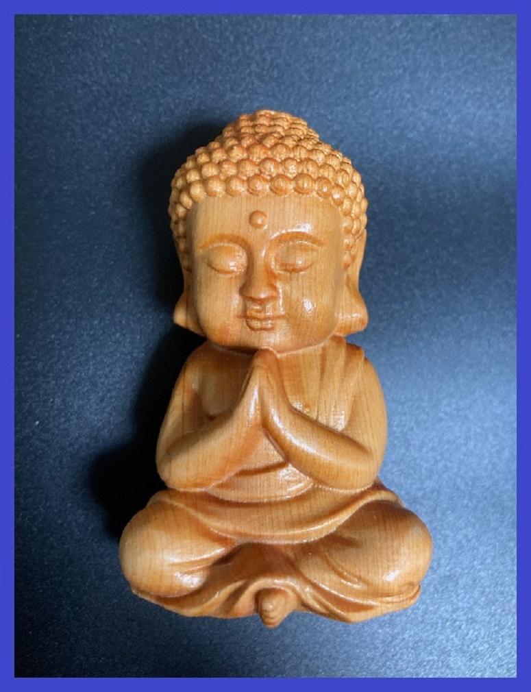 - 【匿名配送】仏像 ヤーバイ 崖柏 天然木 檜 小如来 合掌 縁起物 置物 風水 6-3