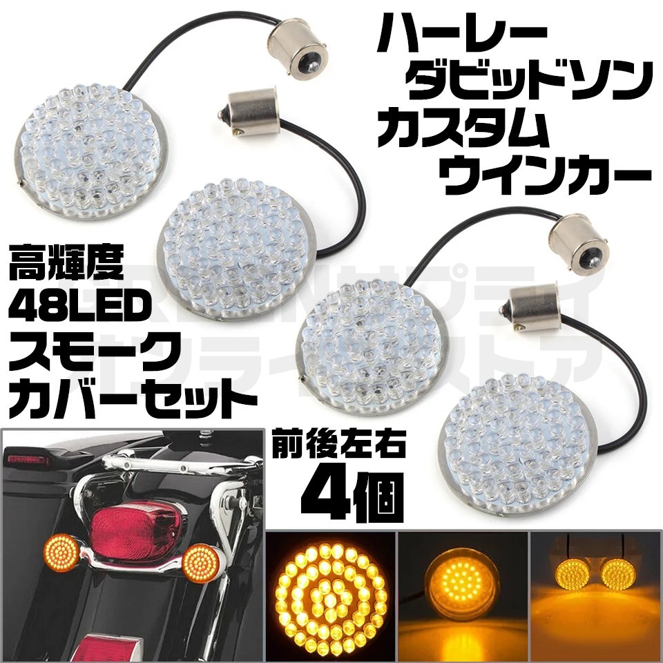 > ハーレー 4個セット 高級高輝度 48 LED ウインカー カバー スモーク