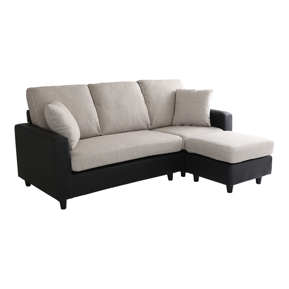 > 北欧インテリア 3人掛けコンパクトカウチソファ【lugna-ルグナ-】HO-K3P-PBKBE PVCブラックベージュ
