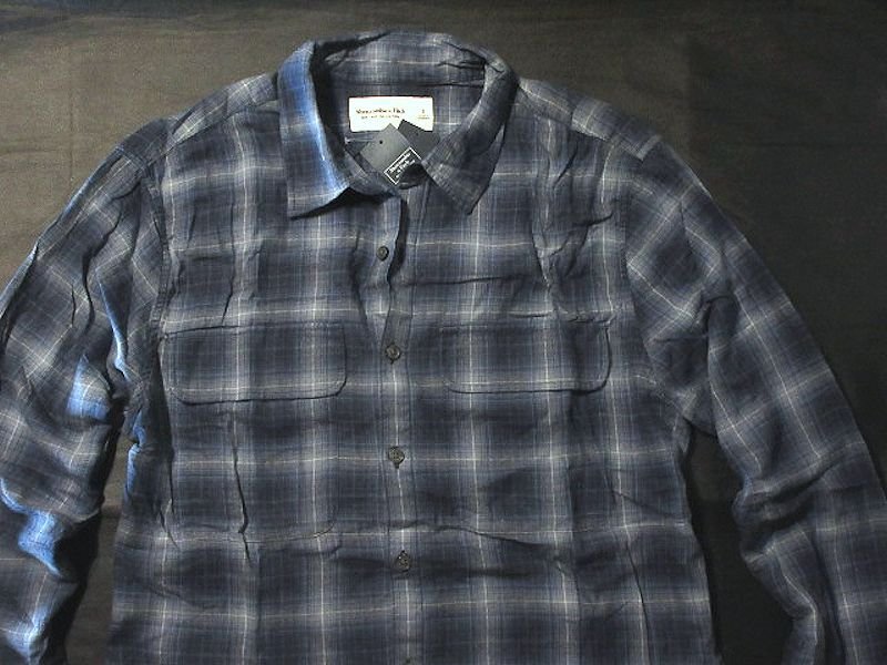 > 本物正規◆アバクロ◆長袖シャツ ストレッチ TWILL■S■紺/青 チェック■新品■3294-208