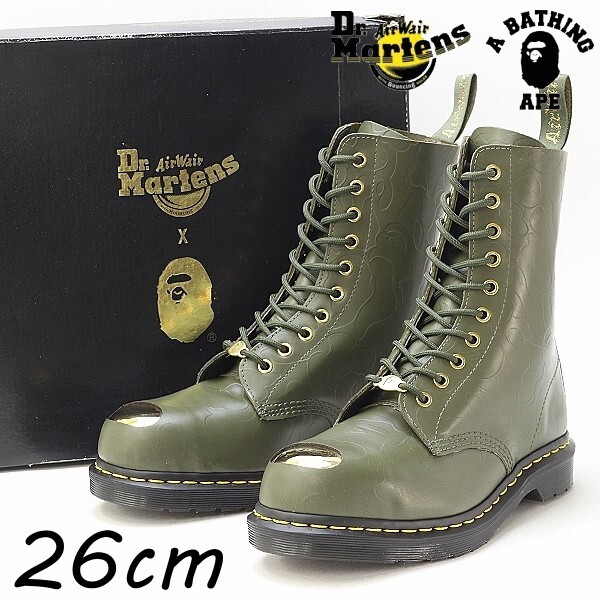 - 新品◆Dr.Martens ドクターマーチン×ア ベイシング エイプ 1490 BAPE SMOOTU EMBOSS ABC 10 HOLE STEEL TOE CAP SHOES ブーツ カーキ 26cm