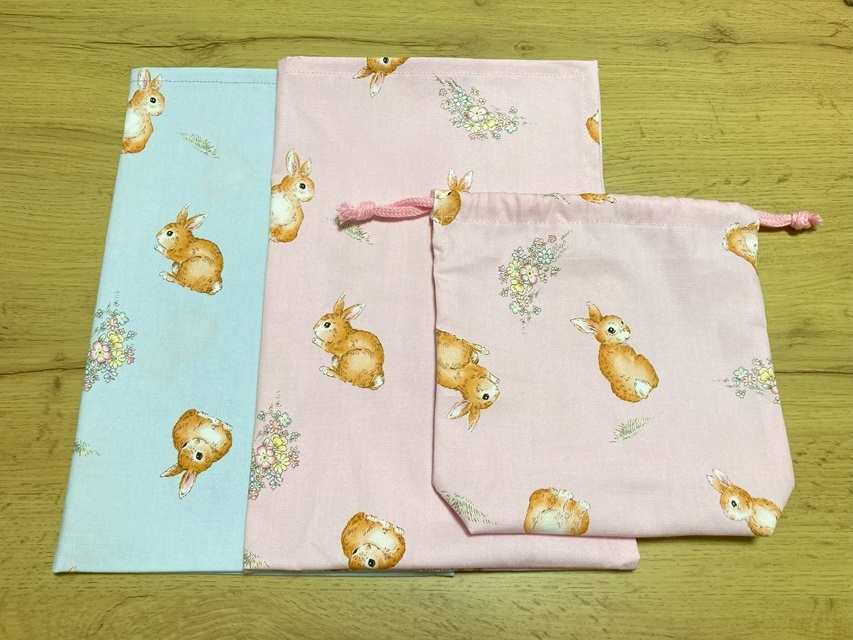- ハンドメイド ☆小学校用ランチョンマット2枚&給食袋 40×60☆(4)給食セット・うさぎさん