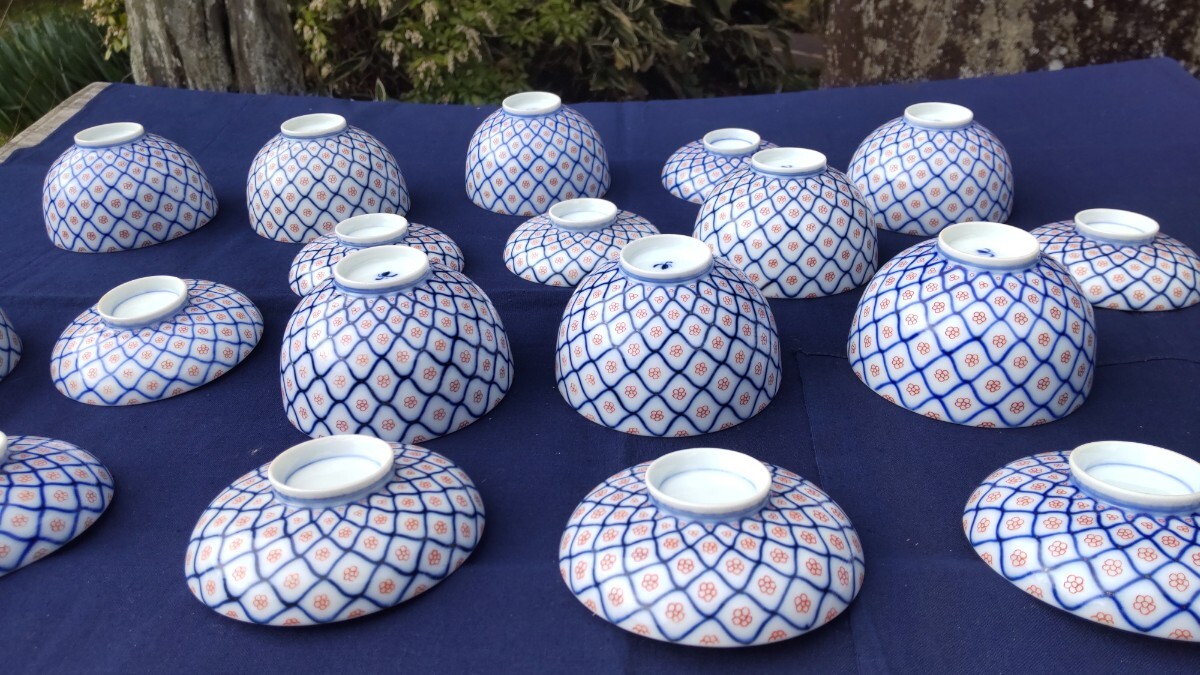 - オールド香蘭社 蓋付茶碗 9客 網文に梅花 香蘭社調 推定明治大正期