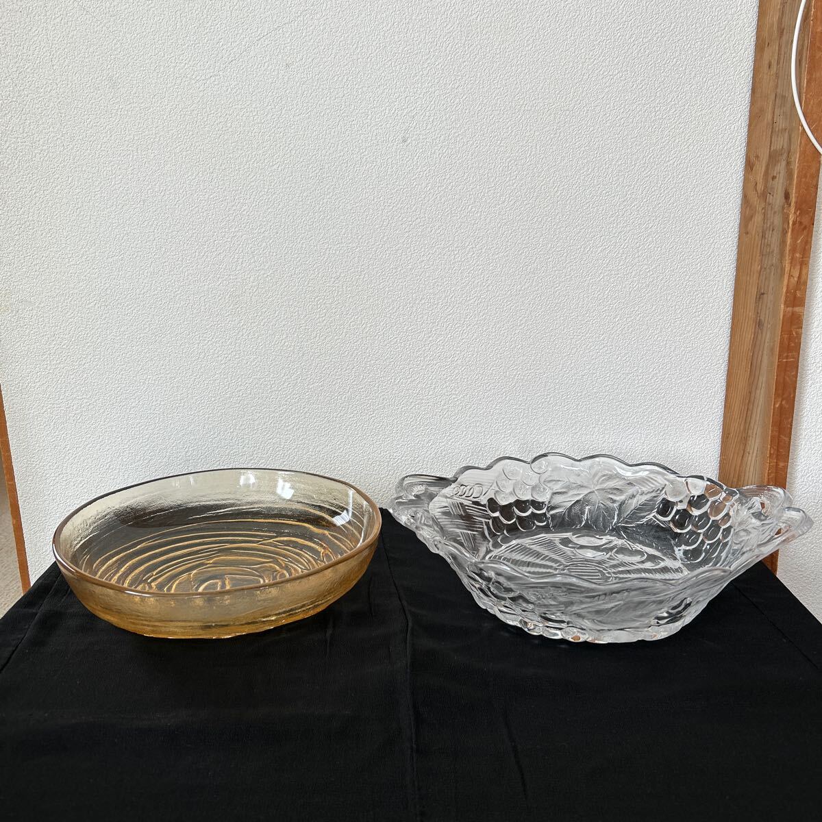 - 昭和レトロ ガラス 大鉢1個と 果物柄 ガラス 果物入れ 1個★ガラス食器 ★