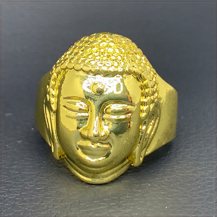 > [RING] ゴールデン ブッダ フェイス 仏陀 佛 仏像 仏教 ありがたい 金の大仏様の顔 デザイン 25mm ワイド リング 27号