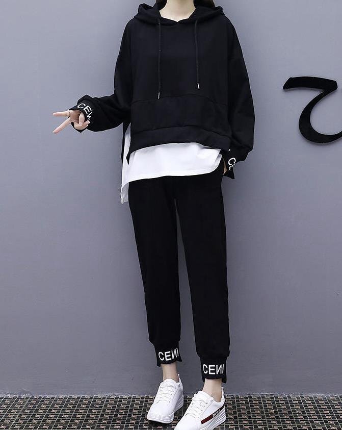 - 長袖 ジャージ 上下セットスウェットレディース2点セット カジュアルフード付きスポーツウエアゆったり妊娠着体型カーバー HE817