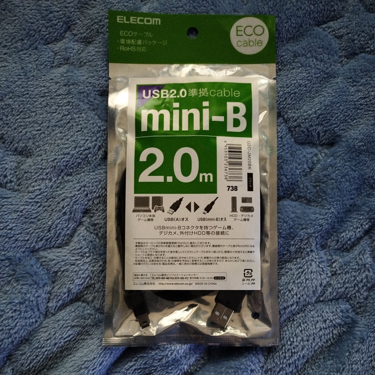 - 新品未使用 エレコム USBケーブル miniB USB2.0 (USB A オス to miniB オス) torne対応 ブラック トルネ PS3 デュアルショック3 2メートル