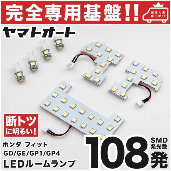 > ◆フィット RS GE8 GE9 ホンダ ★専用設計基盤★108発 LED ルームランプ 7点セット Fit Honda 車内灯 室内灯 ライト アクセサリー
